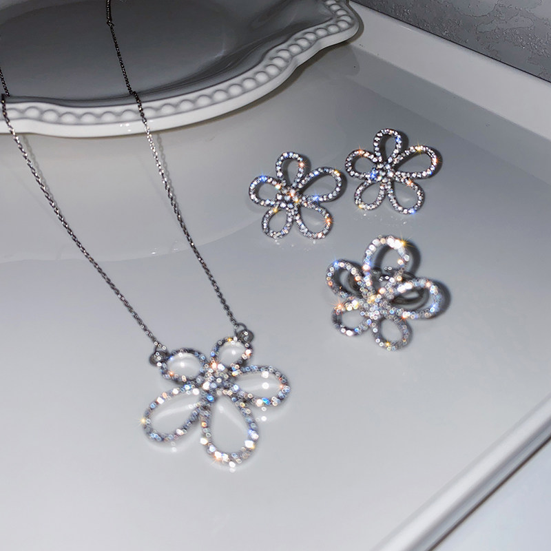 Main photo Popular (A B C)Three-piece set A(necklace) Smart diamond Flower B (earring) Love diamond flower C (ring)Happy diamond flower