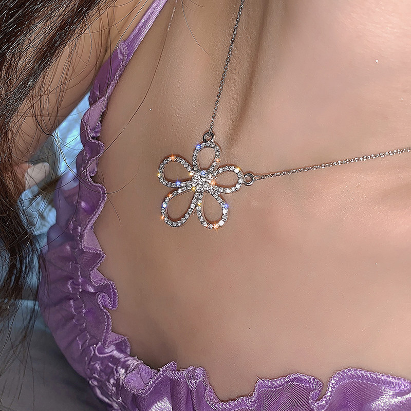 LACELIPS senior goddess Luxury super flash flower rhinestone necklace necklace net red locker collarbone chain woman