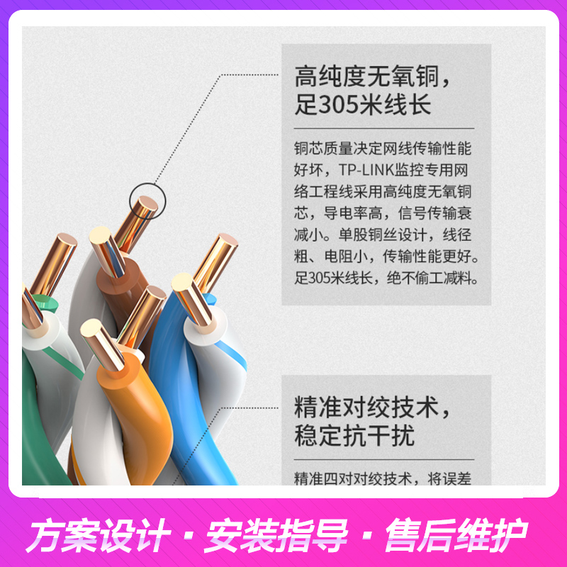 Pulian TP-LINK Super Category 5 Category 6 100M Gigabit Unshielded Network Monitoring Engineering Line Oxygen-Free Copper Box Wire Computer Broadband Network 8-core Network Route 305m 100m