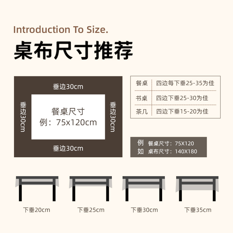 120*100cm 120*120cm (square table) 120*150cm 120*180cm (regular table) 120*200c