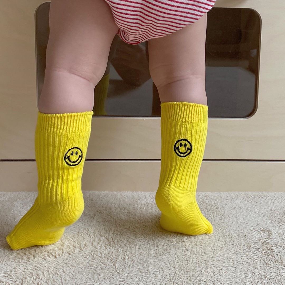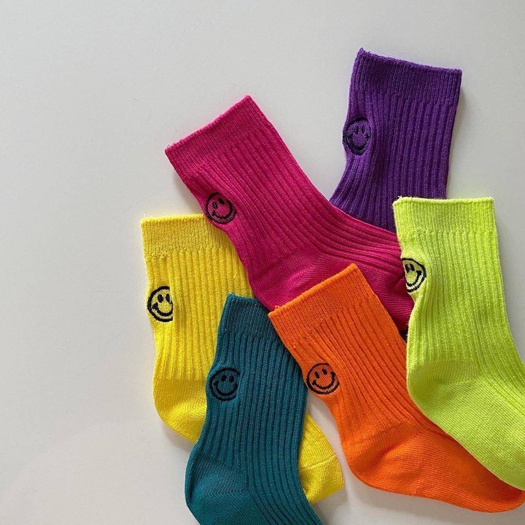 ins exploits Korean spring autumn new baby fluorescent color 100 lap embroidery midbarrel socks baby cute children socks