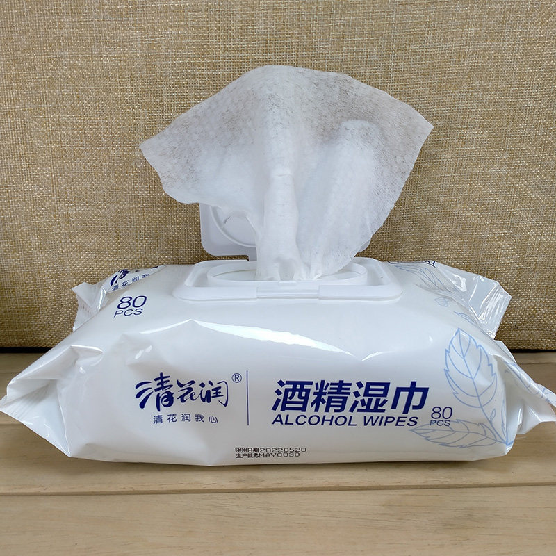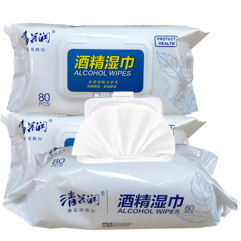 Clear flower moisturizing alcoholic wet towels 3 packs * 80 smoke and sterilization disinfection large bag student children household cleaning skin damp paper towels