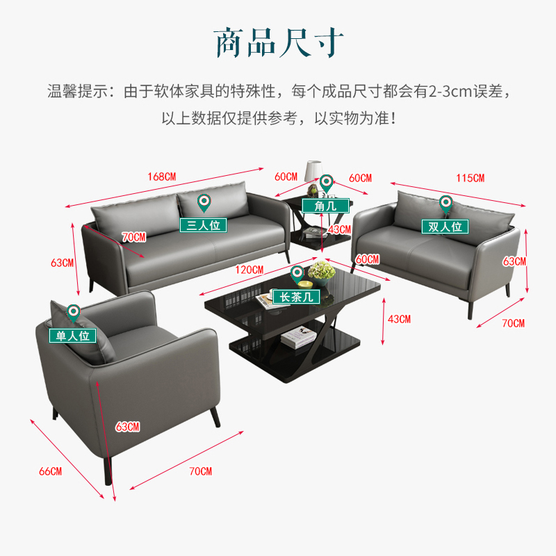 Office sofa tea couple combination of minimal modern business guest triple corporation leather office sofa
