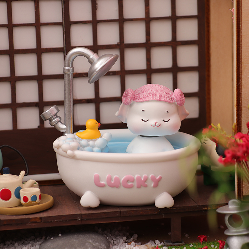 Little pig, little rabbit, powder blue mat, potted plant, little lion, little cat, little rabbit, little lion, little cat, pink mat, potted plant, little pig