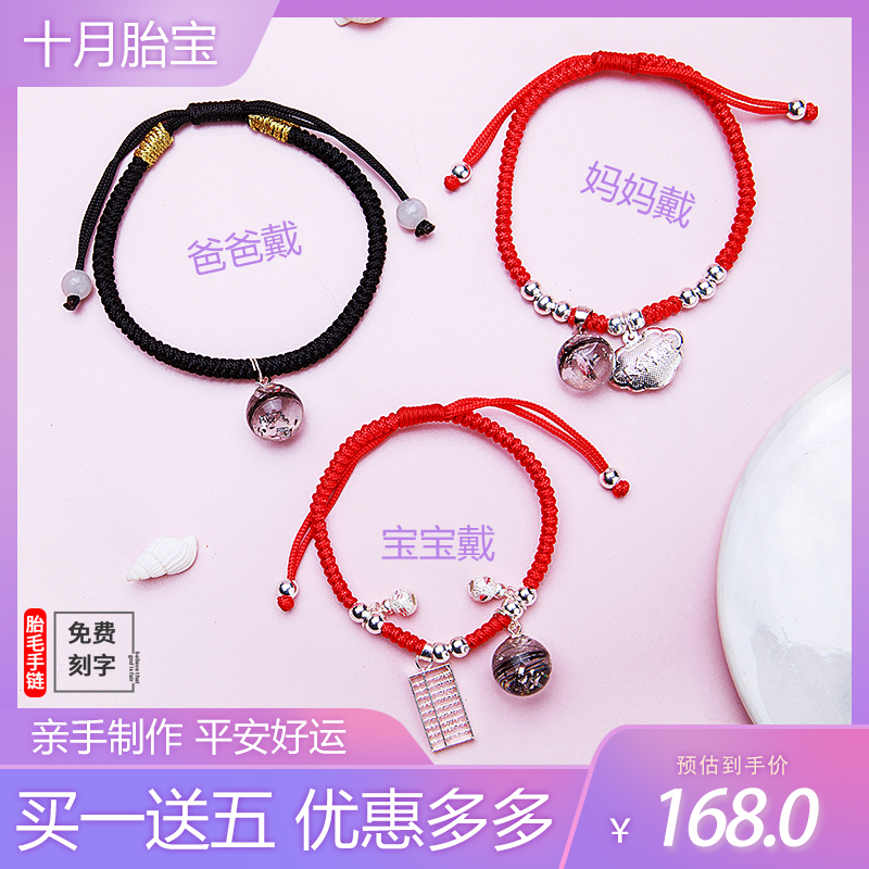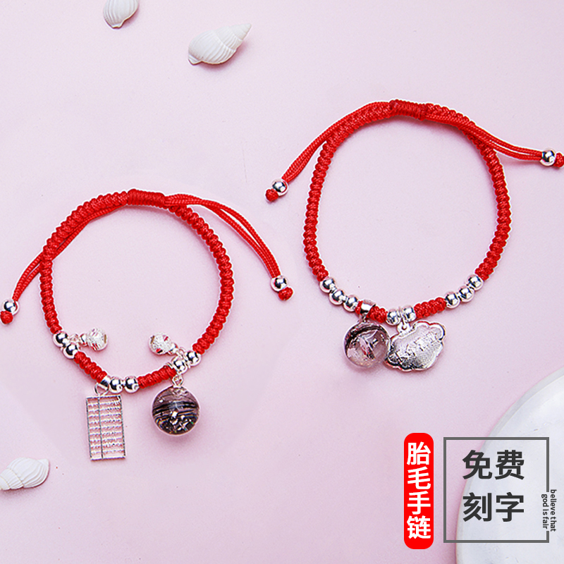 Mouse baby fetal hair pendant red rope bracelet pure silver fetal souvenir diy hand - made baby baby's handmade
