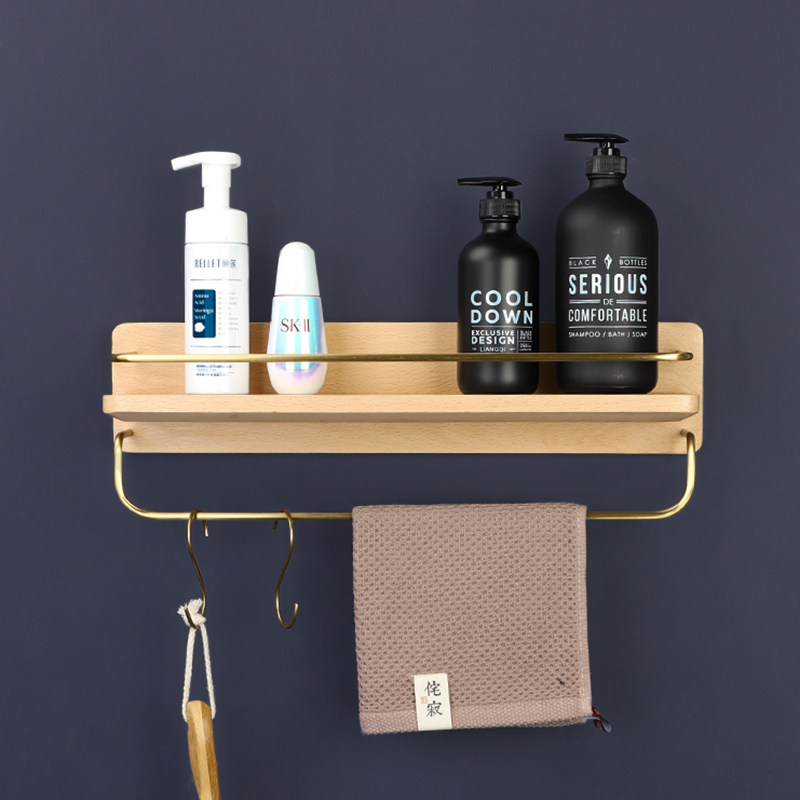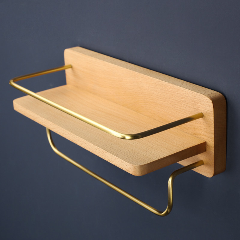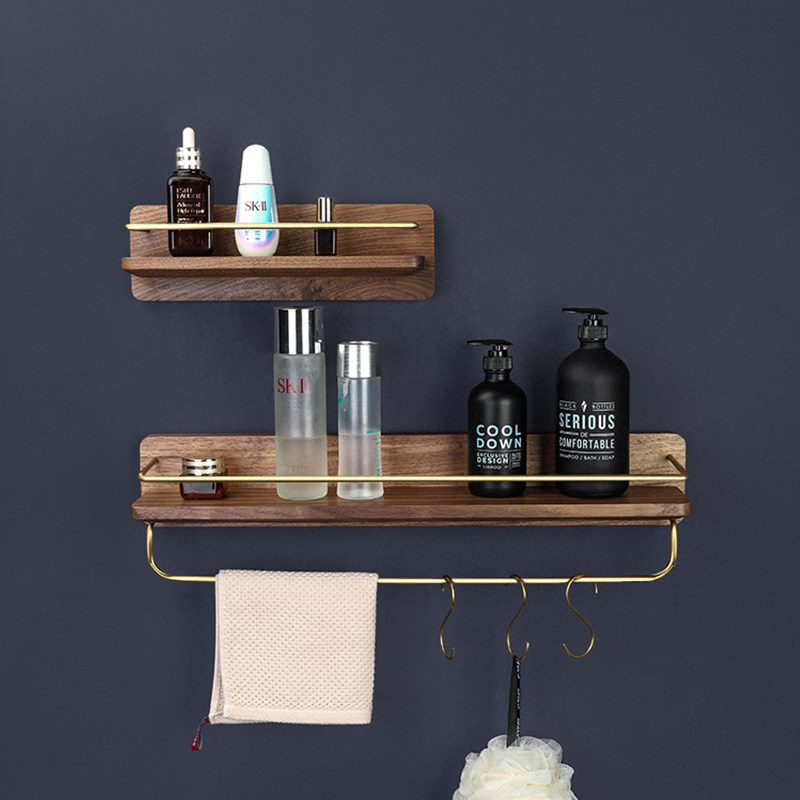 Toilet Japanese beech shelf without punching toilet wall hanging rack Bathroom black walnut solid wooden towel rack