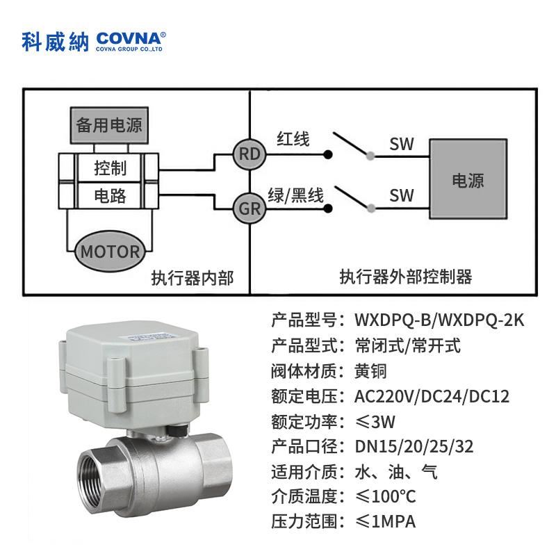 Coweiner covna HK62-H fine electric brass 2-pass ball valve small electric ball valve