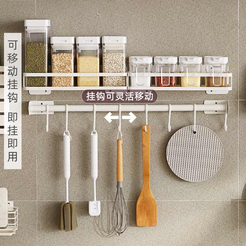 Flap-free punching kitchen rack wall-mounted chopping board rack seasoning rack hanging rod knife rack pot lid rack storage rack
