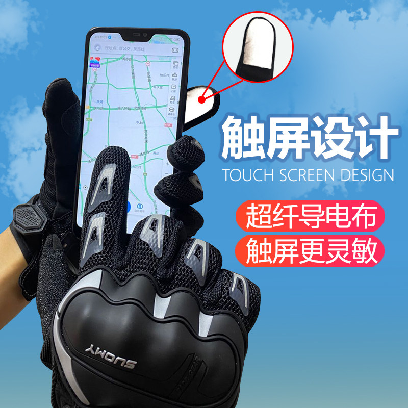 suomy locomotive riding gloves with touch screen anti-fall rider mesh breathable locomotive full-finger male gear all year round