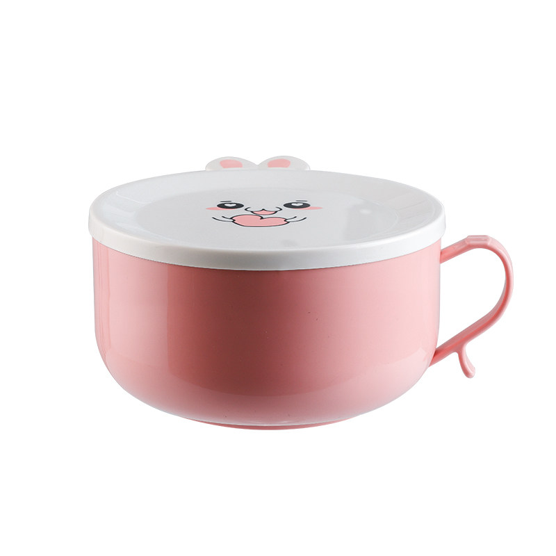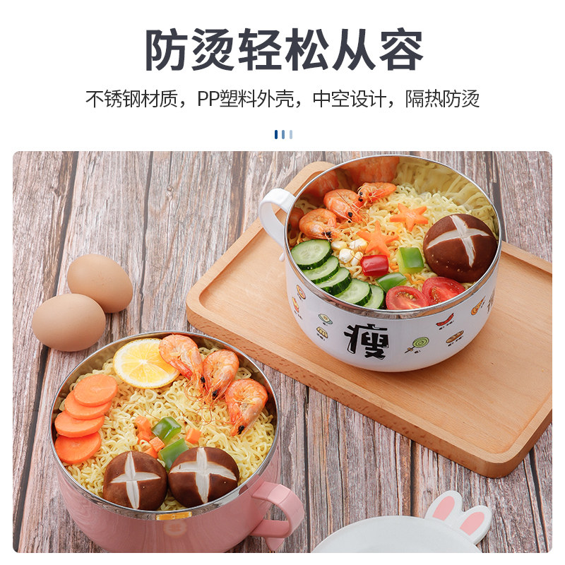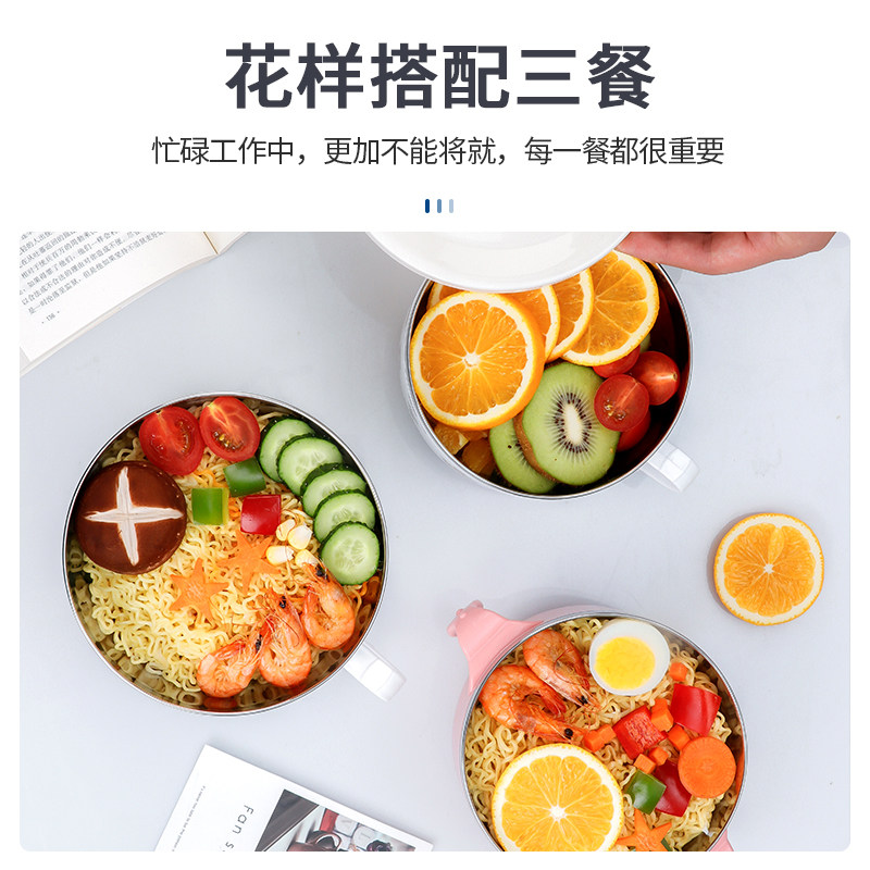 Stainless steel instant noodle bowl with lid Single dormitory student bento box Office worker portable insulation bento box Rice bowl Large