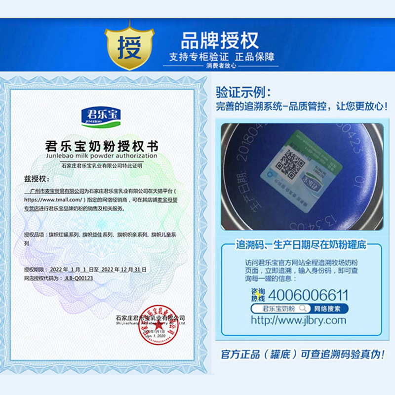 Jun Lebao Flag Small Flag Only Child 4 Powdered Milk Powder Four Paragraphs 800g Pot Official