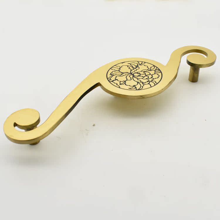 New Chinese style furniture simple back pattern pure copper handle mahogany furniture hardware accessories handle solid wood furniture handle