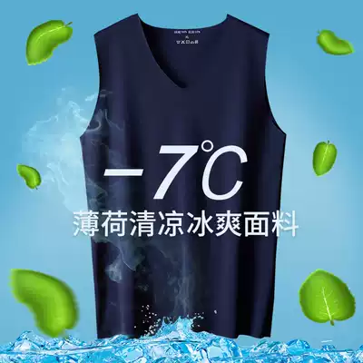 Cooling ice silk vest men's summer thin mint seamless middle-aged loose large size outer wear sports sleeveless inner jacket