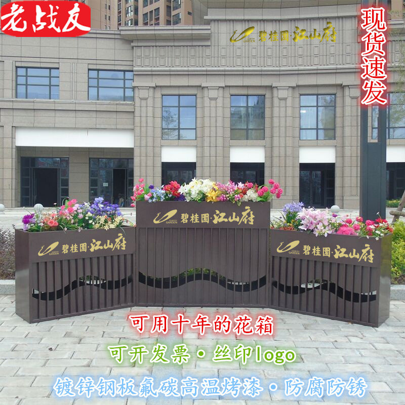 Outdoor flower box combination Wrought iron flower trough Garden Square Road Real Estate Sample house Display center Outdoor anti-corrosion flower bed customization