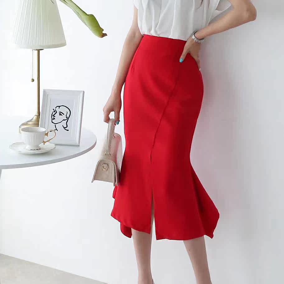Open fork elegant fish tail half body dress with hip mid-length fashion temperament name Yususie South Korea Summer