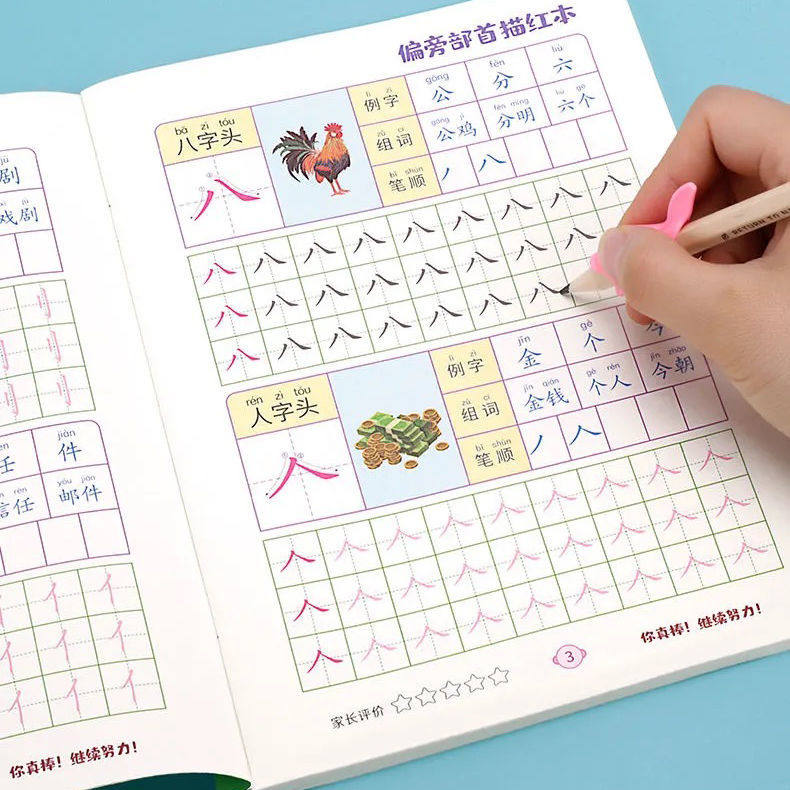 Children's calligraphy copybook Kindergarten sketch Red book beginners digital character postings writing and writing books The big class young and small convergence