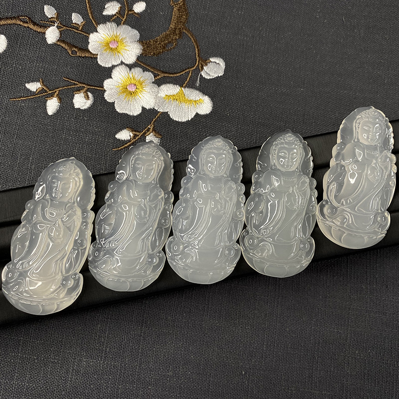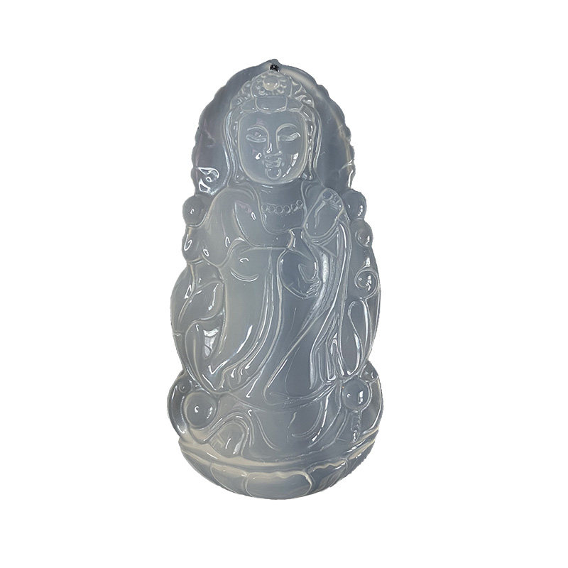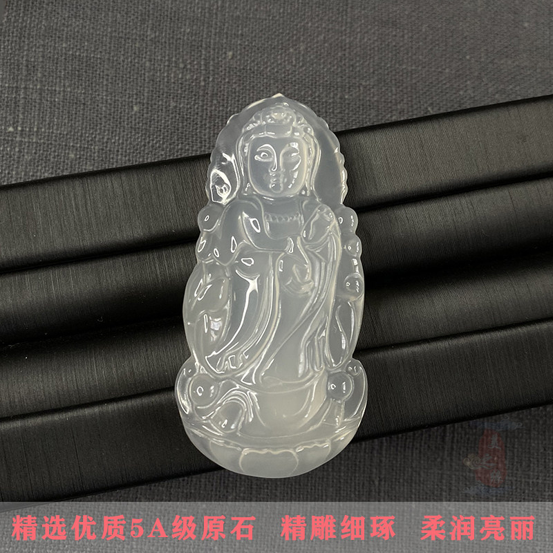 Natural jade Guanyin pendant male white jade large station Guanyin necklace pendant ice jade myelin agate Guanyin Yusa pendant
