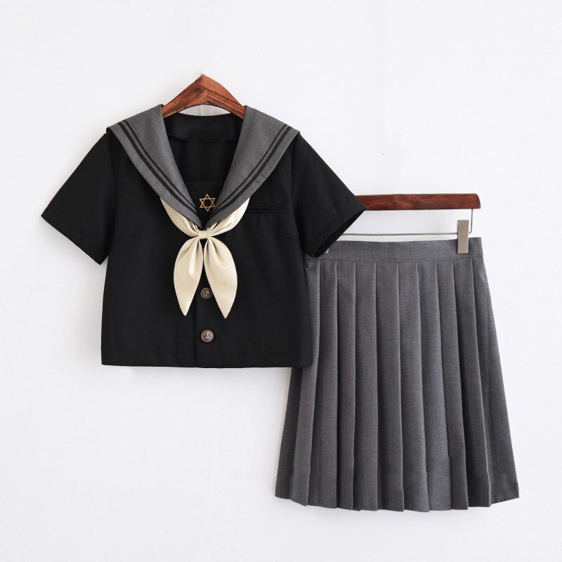 short sleeve grey short skirt suit long sleeve grey short skirt suit short sleeve black short skirt long sleeve black short skirt short sleeve black long skirt (about 60 cm) long sleeve black long skirt (60