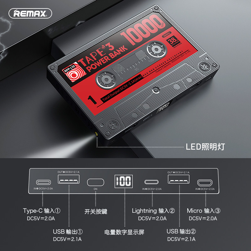 remax retro tape mobile charging with plane creative personality wave gift portable universal flush action power supply