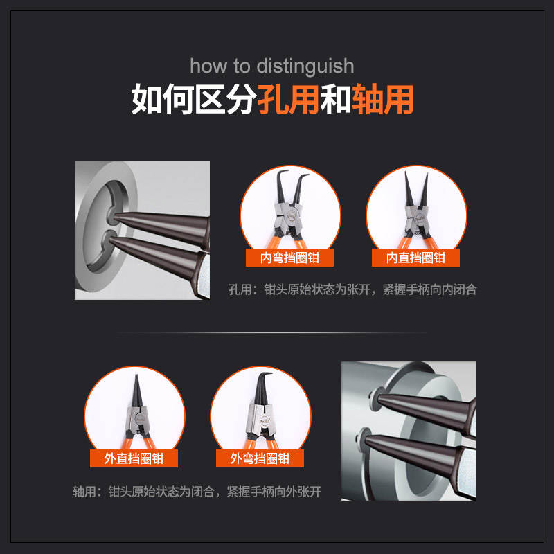 Yasaiqi multi-function retaining circle pliers 7 inch inner bending outer bend circlip pliers inner and outer dual-purpose multi-specification snap ring spring pliers
