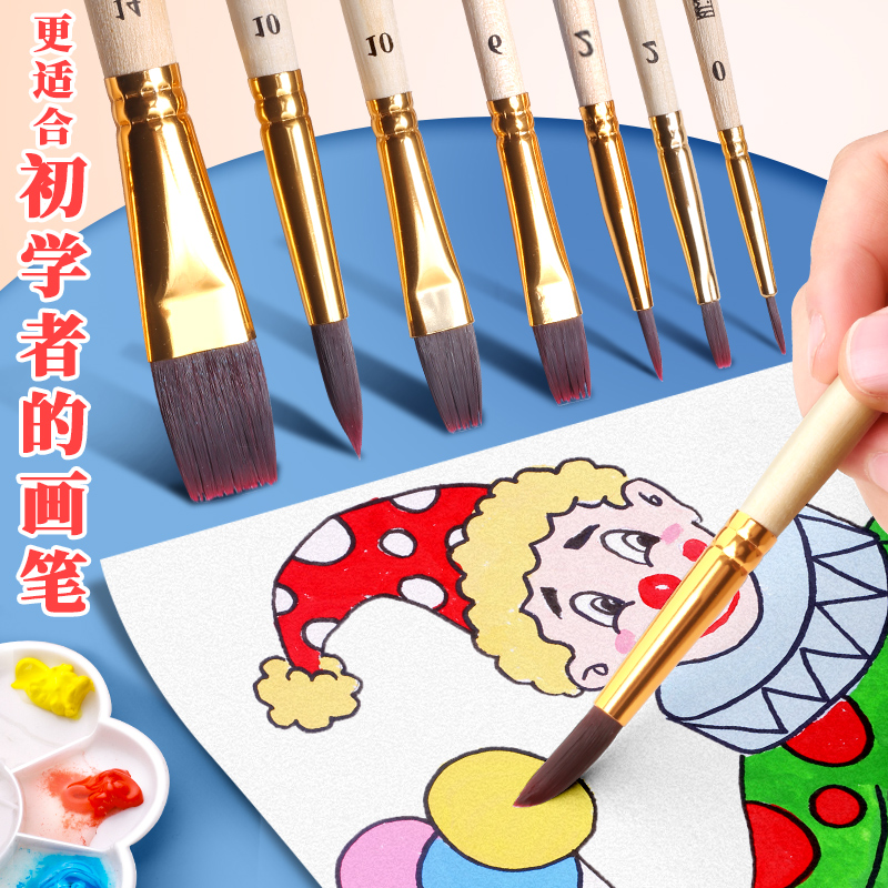 Gouache set watercolor pen professional art painting special nylon wolf milli fan type lining pen oil brush acrylic paint color brush bristle flathead beginner student full set brush