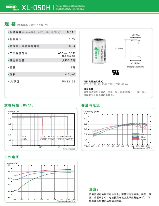 Original EVE ER14250MR-145(1 2AA) high temperature lithium battery 3 6V