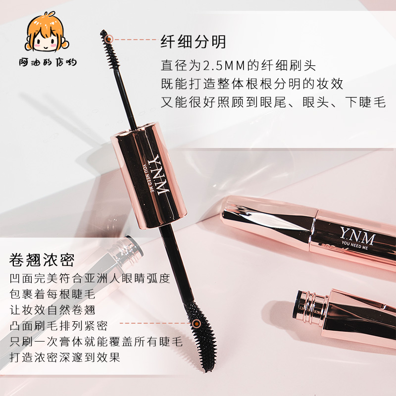 A oil shop yo YNM mascara double-head thick waterproof slim curl non-dizzy female long-lasting brush head very thin