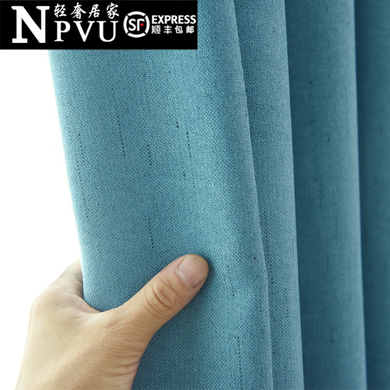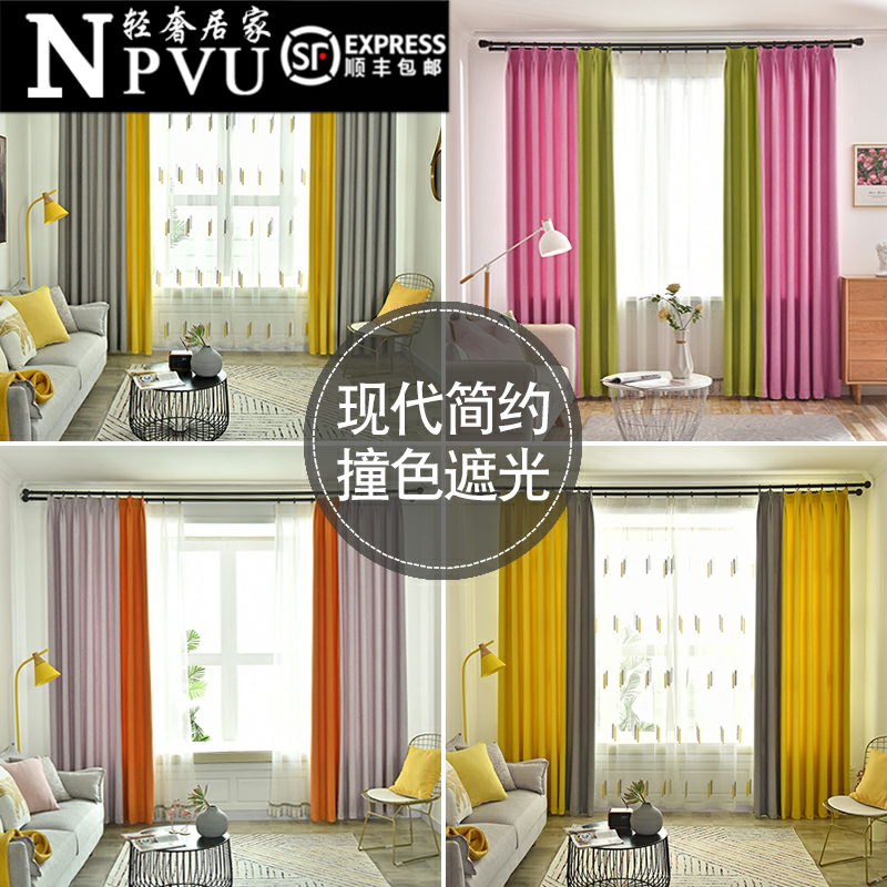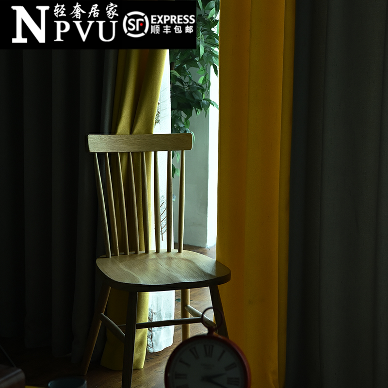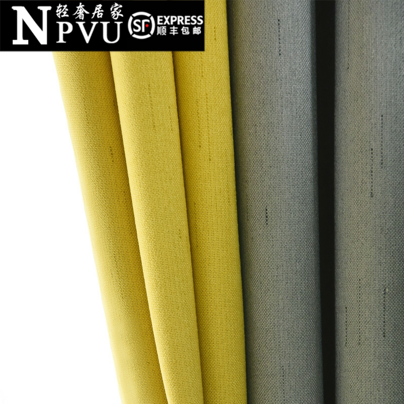 NPVU modern bedroom curtain living room shade insulation Nordic minimalist style yellow stitching blackout curtain fabric