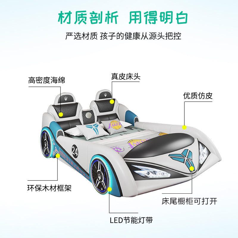 Children's bed with fence Boy single solid wood sports car soft bag cartoon 1 2m girl princess multifunctional car bed