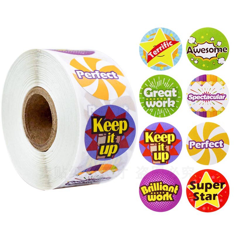 500 volumes of three styles English reward Praise Sticker adhesive circular Early Childhood Puzzle Learning Teacher