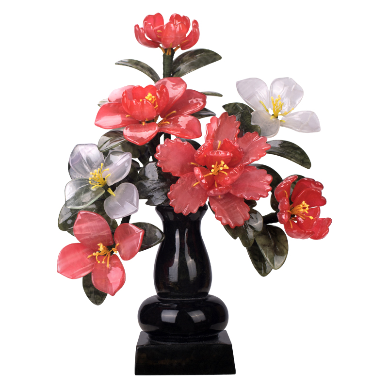 Natural jade panjing peony flower living room home jewelry wine cabinet Chinese creative desktop crafts jade carving ornaments