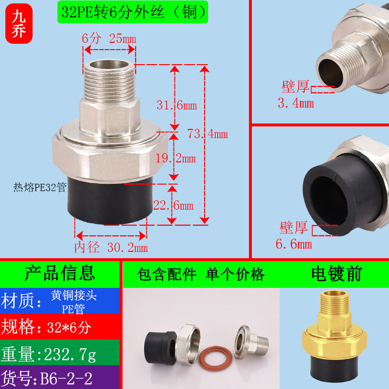 PE25 32 external wire wire actively connects 4 minutes 6 minutes 1 inch 1 2 inch 1 5 inch 2 inch 2 inch copper active dimensions straight