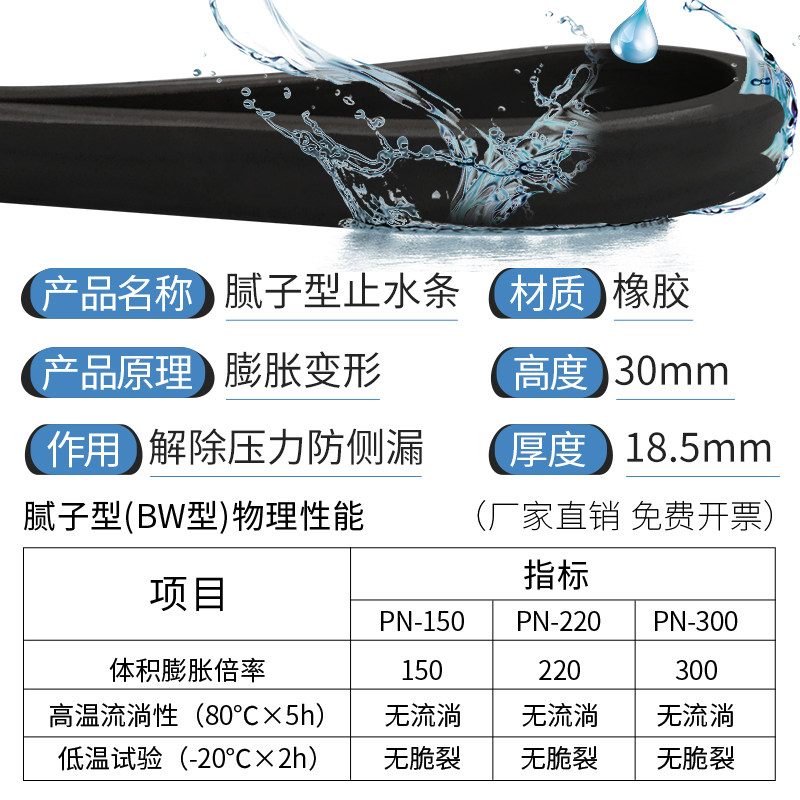 In case of water expansion waterstop BW rubber waterstop 20*30BW putty type PZ product type sealed waterproof rubber strip