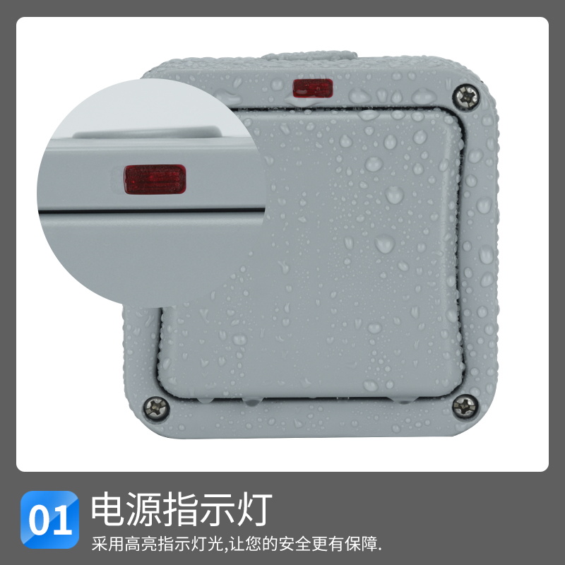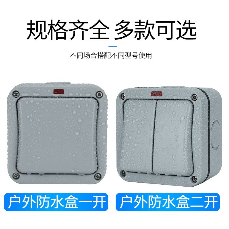 Rao electric gray outdoor waterproof box one open two open 10A outdoor open rainproof switch control box with indicator light