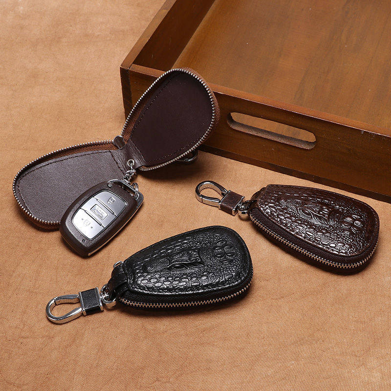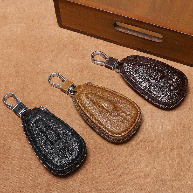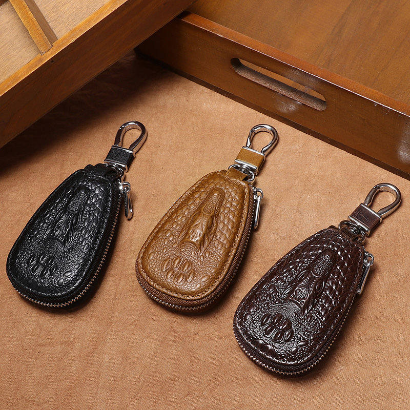 Leather Crocodile Pattern Key Case Men's Key Case Universal Leather Car Zipper Remote Control Bag New Trendy