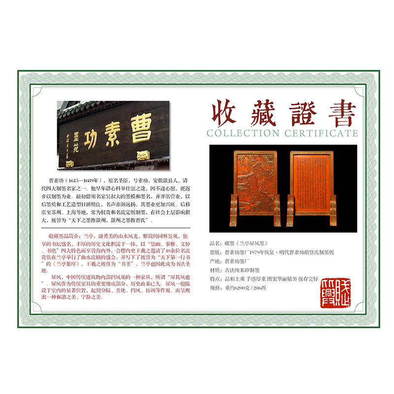 National Non-relic 1979 Restoration of the Ming Dynasty old ink version of "Lanting Screen" Cao Suigong Zhu sand ink block collection Old and old ink block High-end Emblem Ink Bar Handicraft house Four Treasure China Wind-Taoba