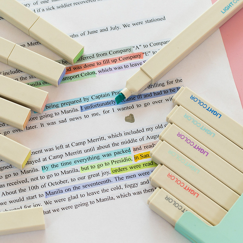 Set Things Social Soft Head Fluorescent Pen Light Color Series Mark Pen Students With Note Pen Suit Color Rough Retro focus soft color retro color silver light silver Light fluorescent pen Set of hand account pen for special notes Special