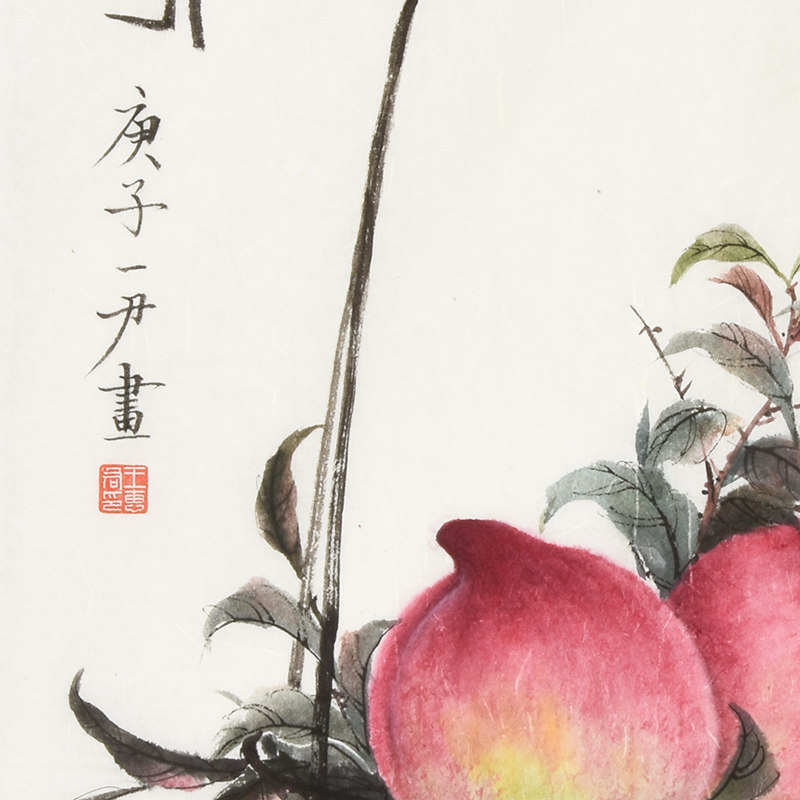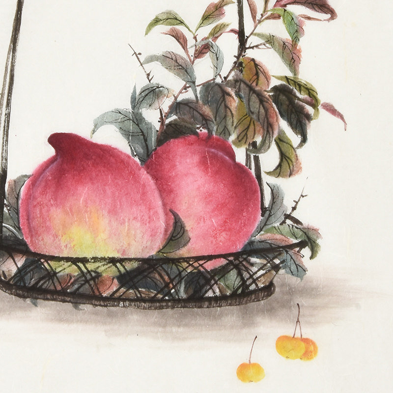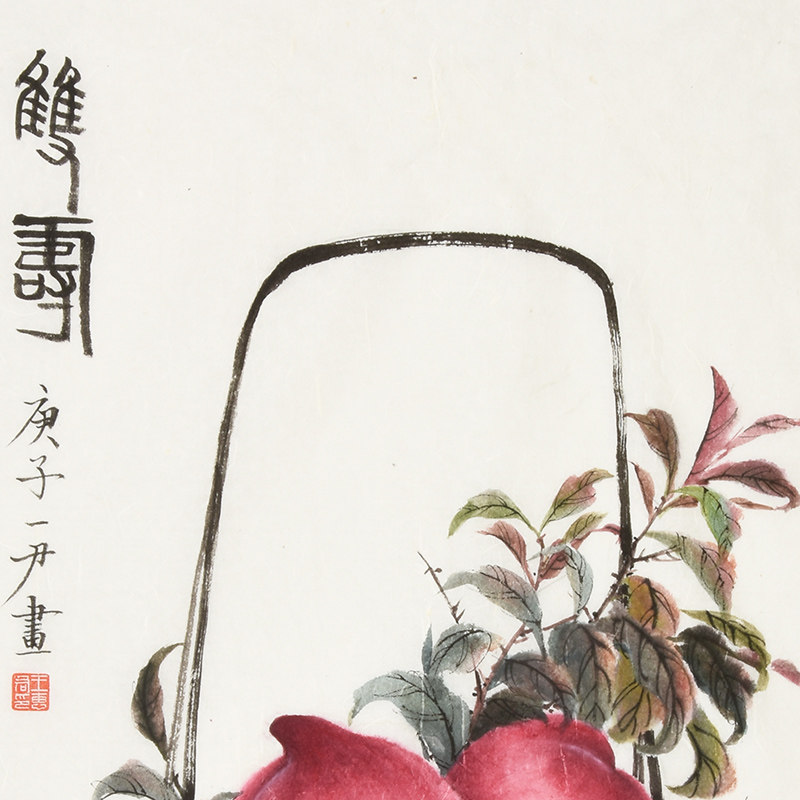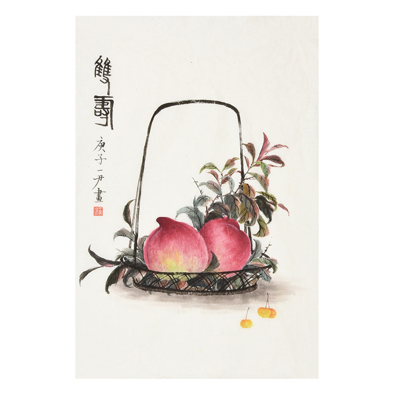 Shoot a li minus 50 Wang Huijun's "Double Life Map" famous ink painting peach shou peach wish shou old life star