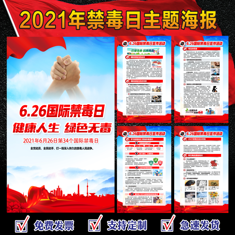 Single selective purchase (message coding) C subsection 2021 Anti-narcotics Day Topics section 40CMX60CM Poster stich 6 sheets RMB55 C Anti-drug Day Theme 2021