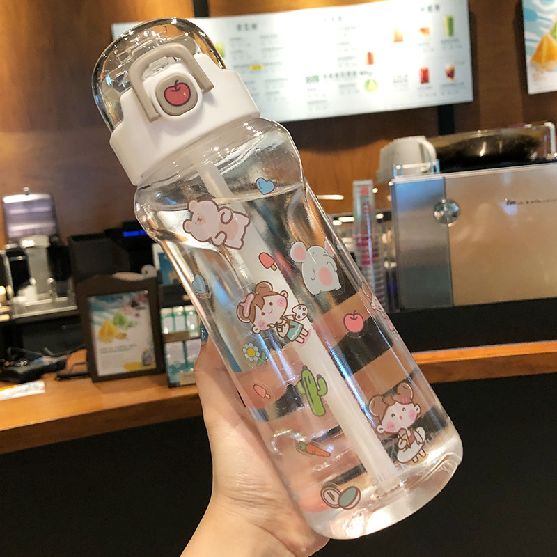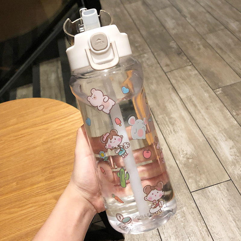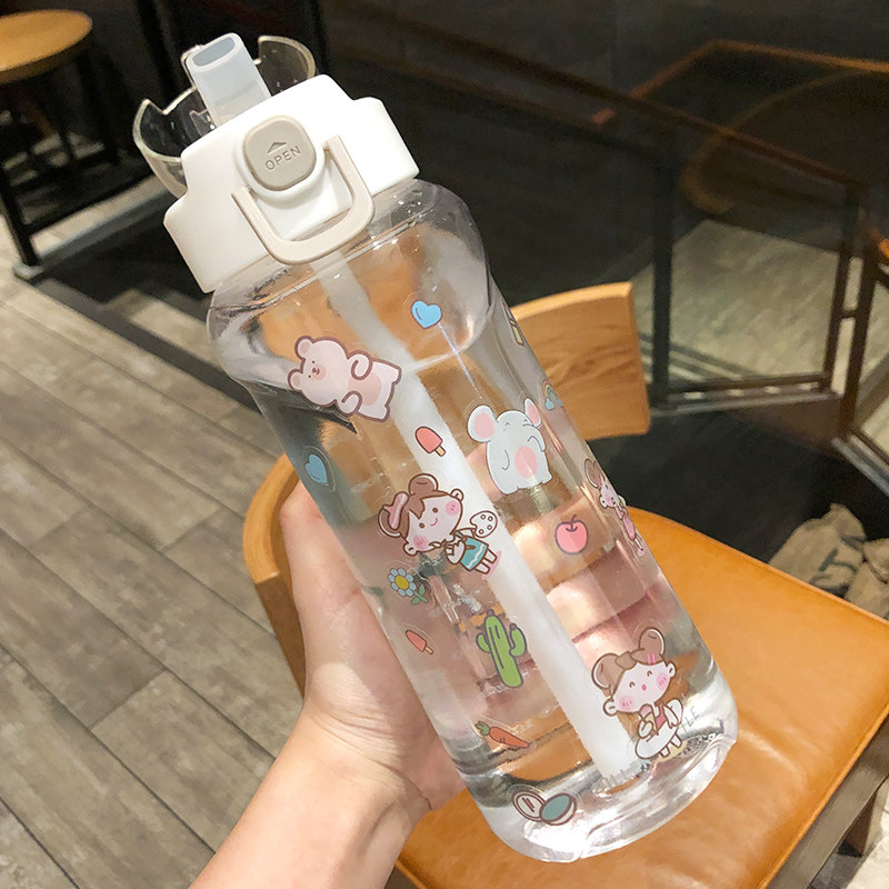 Large Capacity Straw Water Cup Female Han Version Summer Men Sports Kettle Portable Gym Cup Cute Teenage Girl Anti-Fall