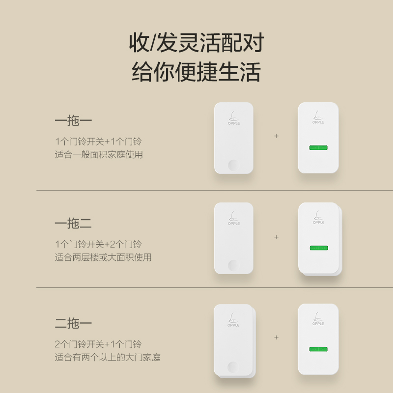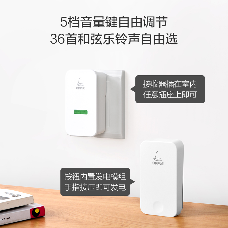 OPPLE Doorbell Home Smart Ultra Long Distance Self-Generating Wireless Doorbell Switch One Drag Two Elderly Pager Z