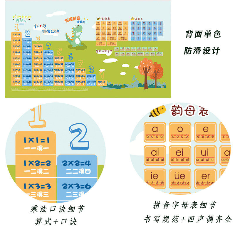Multiplication Pinyin table green dinosaur pattern table mat multiplication Pinyin rainbow deer table mat multiplication Pinyin spaceman pattern table mat multiplication Pinyin table underwater world pattern table mat English Phonetic table grass field