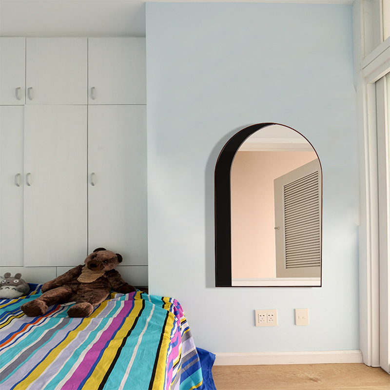 Highlights home improvement special-shaped mirror wall-mounted home creative light luxury modern decorative mirror arched full-body mirror wooden frame landing
