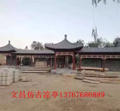 Wooden tile promenade custom resin tile promenade Custom gazebo connection promenade custom Ancient building small green tile promenade custom