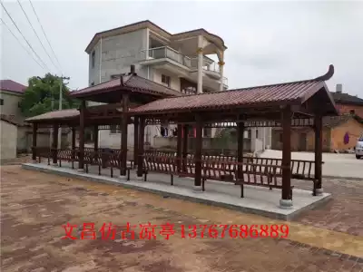 Wooden ancient building landscape corridor Villa Garden Leisure grape corridor New rural transformation covered bridge pavilion Classical
