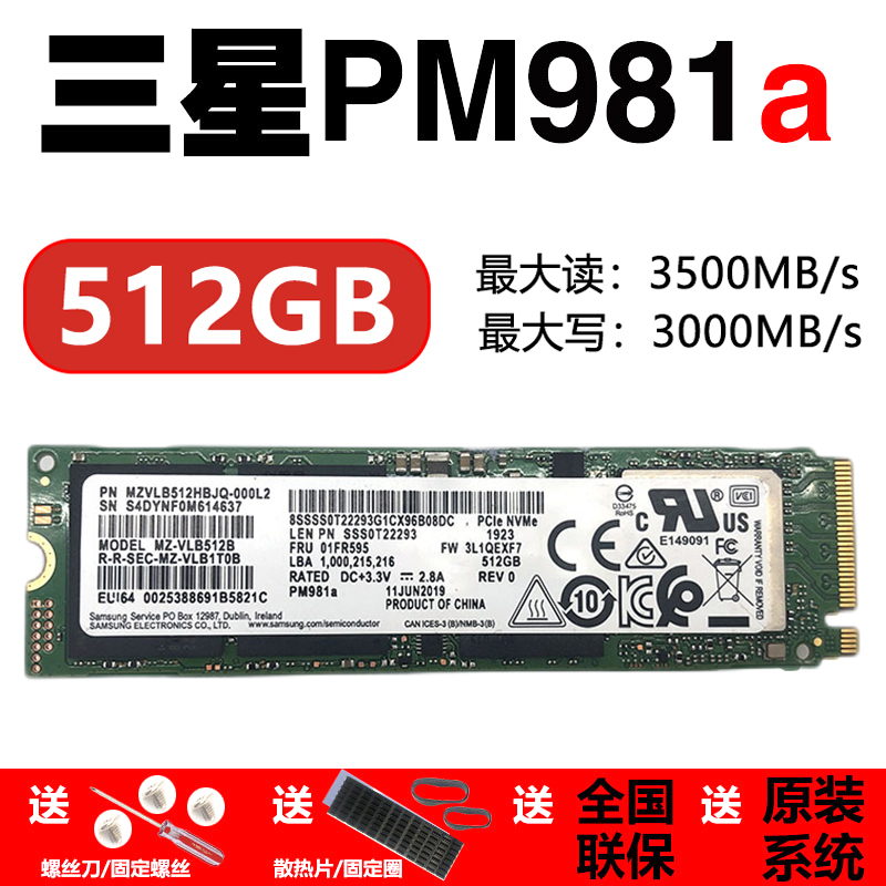 Samsung PM981A 512G PCIENVME Notebook Desktop Solid State Drive 256G 1T M2280SSD