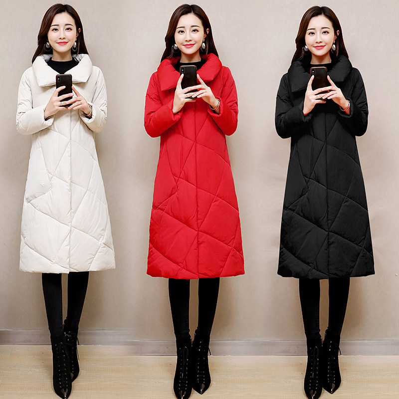 2022 cotton coat women's winter new Korean version thickened over-the-knee down cotton coat mid-length version large size coat cotton jacket tide