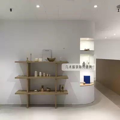 Clothing store window decoration platform in the island display running table in the middle of the table with bag display shelf