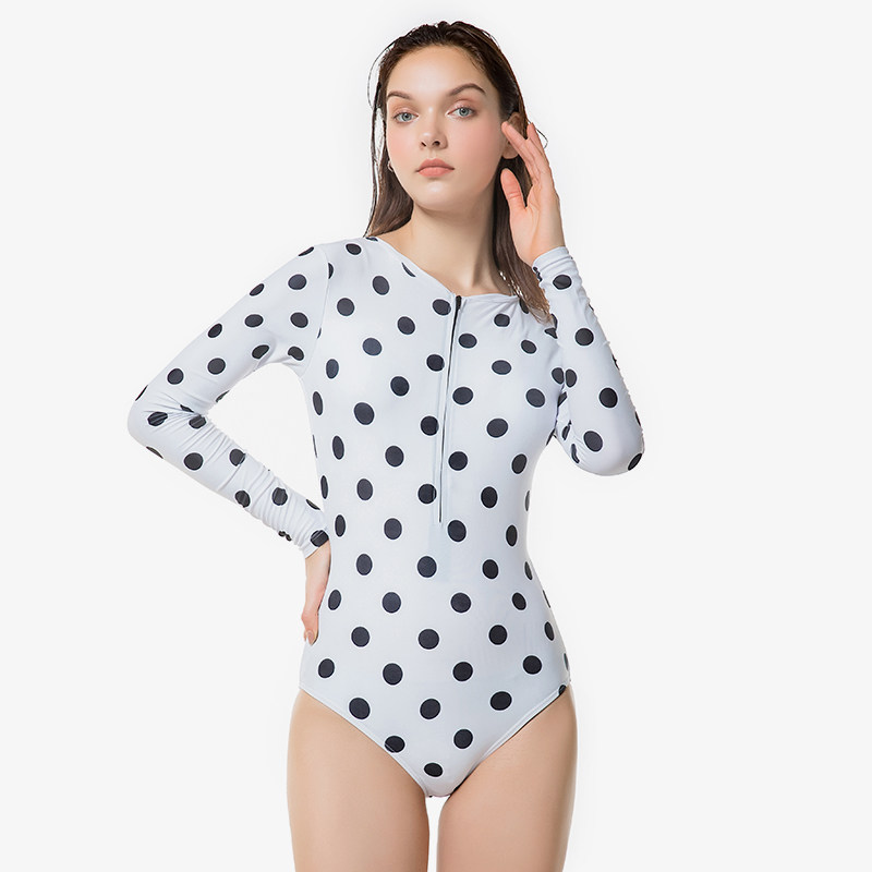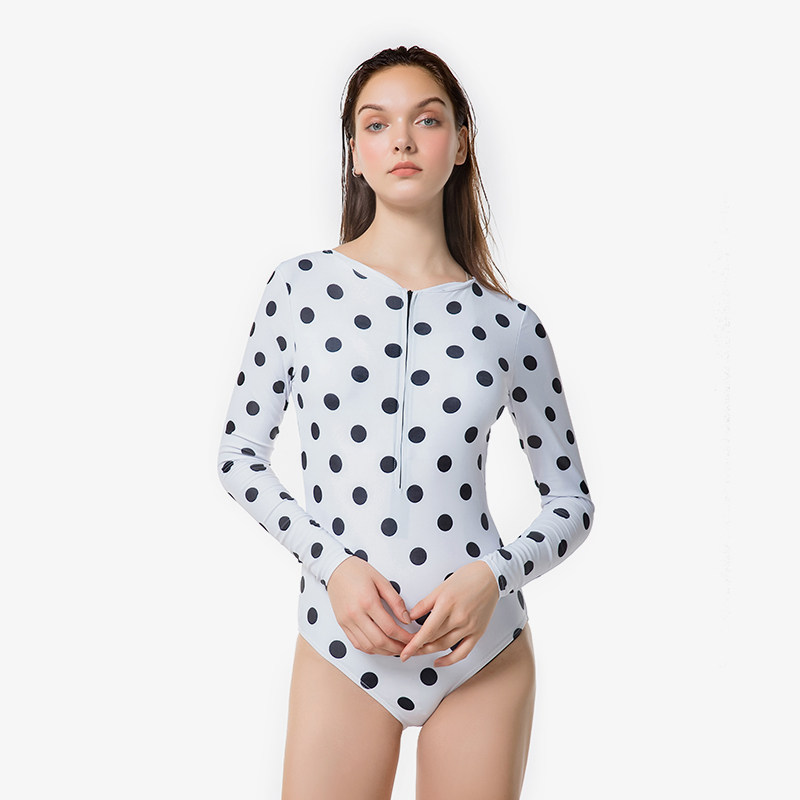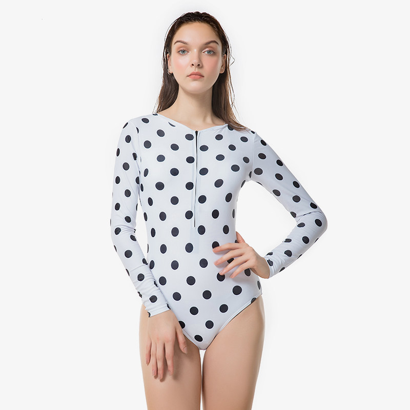 V-neck white polka dot swimsuit(youthful vitality fashion slim fit)
