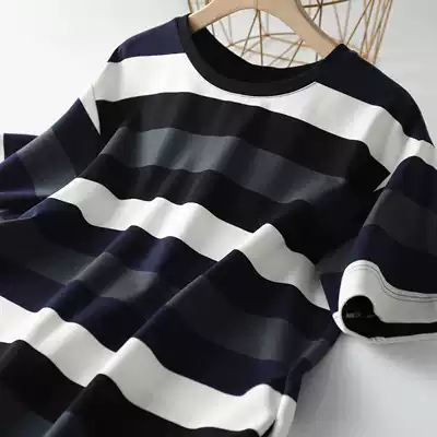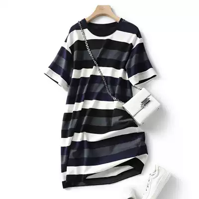 Medium and long version of loose large size striped half-sleeved top design sense short-sleeved t-shirt skirt female niche summer T-shirt ins tide